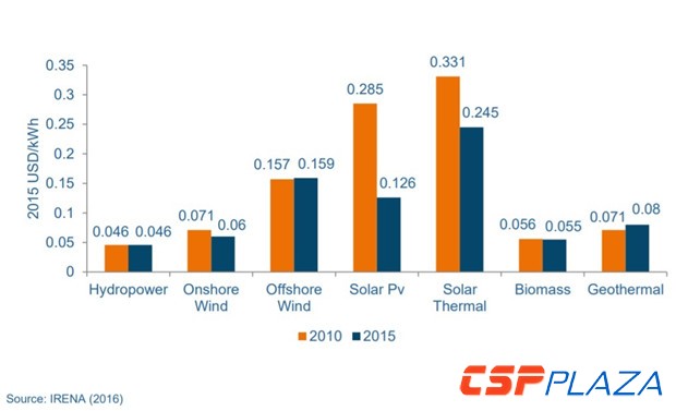 2010至2015年期間,據IRENA發布數據,光伏、光熱和陸上風電項目引領了可再生能源發電平準化成本(LCOE)的下降。可再生能源距離實現平價上網的目標越來越近。