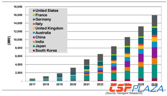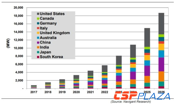 Navigant Research預測,2017年5個國家預計占全球新增儲能容量的51%,分別是美國、中國、印度、英國和澳大利亞。