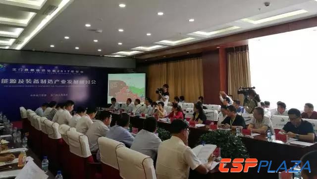 作為首批國家太陽能熱發電示范項目獲批數量最多、裝機規模最大、技術路線最全的城市,玉門對于光熱發電項目的建設非常重視。在產業研討會后,玉門市政府特別召開項目推進會,北京國華電力有限責任公司玉門熔鹽塔式10萬千瓦光熱發電項目、常州龍騰玉門東鎮導熱油槽式5萬千瓦光熱發電項目、中海陽能源集團股份有限公司玉門東鎮導熱油槽式5萬千瓦光熱發電項目和玉門鑫能光熱第一電力有限公司熔鹽塔式5萬千瓦光熱發電項目等4個項目的有關負責人分別對項目進展情況進行了匯報。
