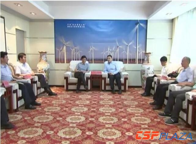 7月24日,酒泉市副市長、玉門市委書記陳炎人會見玉門鑫能光熱公司投資客商---蘇州天沃科技公司總經理兼玉門鑫能董事長鄭長波。