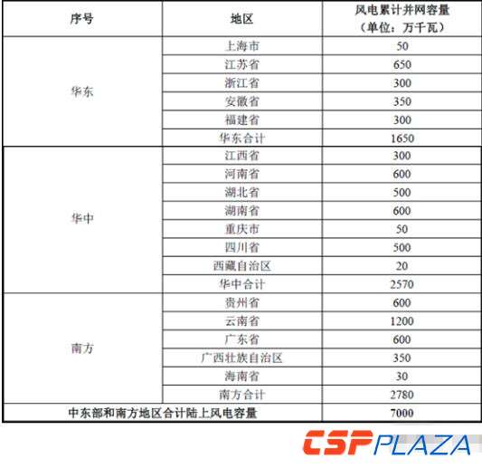 到2020年,中東部和南方地區陸上風電新增并網裝機容量4200萬千瓦以上,累計并網裝機容量達到7000萬千瓦以上。為確保完成非化石能源比重目標,相關省(區、市)制定本地區風電發展規劃不應低于規劃確定的發展目標。在確保消納的基礎上,鼓勵各省(區、市)進一步擴大風電發展規模,鼓勵風電占比較低、運行情況良好的地區積極接受外來風電。