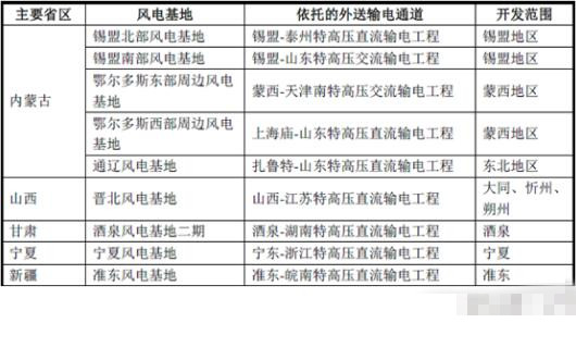 “十三五”期間“三北”地區跨省跨區外送風電基地規劃(含存量項目)如下: