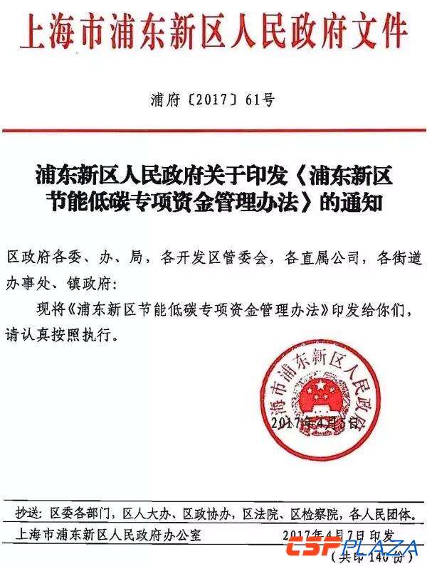 關于印發《浦東新區節能低碳專項資金管理辦法》的通知