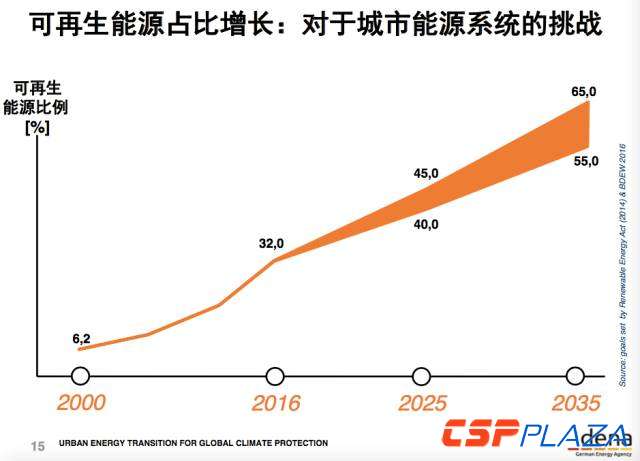 德國能源署預測,到2035年,德國的可再生能源占比約在55%-65%之間。