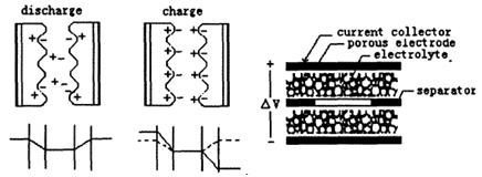 超級電容,又叫雙電層電容器或法拉第準電容器,他們可以被視為懸浮在電解質中的兩個無反應活性的多孔電極板,在極板上加電,正極板吸引電解質中的負離子,負極板吸引正離子,實際上形成兩個容性存儲層,被分離開的正離子在負極板附近,負離子在正極板附近。