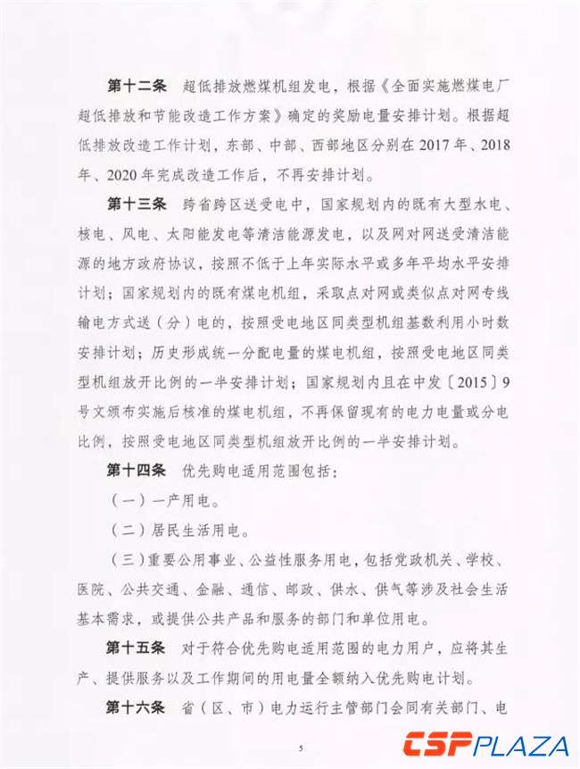 《優先發電優先購電計劃編制暫行辦法》明確規定了優先發電和優先購電的適用范圍。優先發電適用范圍包括:納入規劃的風能、太陽能、生物質能等可再生能源發電;為滿足調峰調頻和電網安全需要發電;為提升電力系統調峰能力,促進可再生能源消納,可再生能源調峰機組發電;為保障供熱需要,供熱方式合理、實現在線監測并符合環保要求的熱點聯產機組,在采暖期按“以熱定電”原則發電;跨省跨區送售電中國家計劃、地方政府協議送電;水電;核電;余熱余壓余氣發電;超低排放燃煤機組。其中納入規劃的生物質能等其他可再生能源發電和余熱余壓余氣發電按照資源條件對應的發電量全額安排。