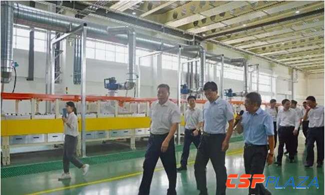 2017年8月16日,天津市委副書記懷進鵬、濱海高新區工委書記倪祥玉一行來到位于天津濱海光熱產業園的天津濱海光熱反射技術有限公司,對即將正式運行的反射鏡生產線進行調研。天津濱海光熱發電投資有限公司總經理蘇堅健,天津濱海光熱反射技術有限公司總經理官景山,甘肅光熱發電有限公司總經理胡建輝出席陪同。