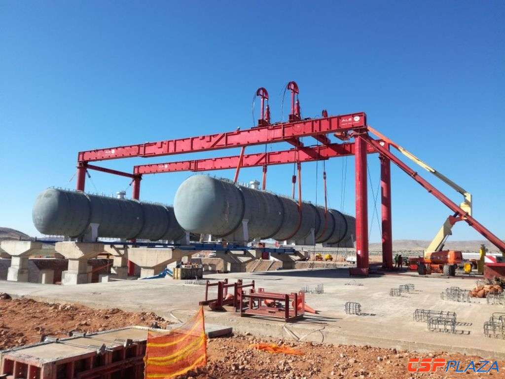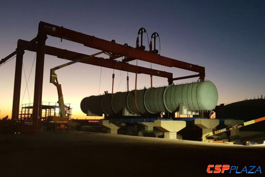 據悉,這些組件重達37噸至291噸之間不等,并在納米比亞Luderitz港口通過各種多軸運輸組合形式裝車。ALE啟動了一輛18軸牽引拖車、一輛18軸鵝頸掛車、兩套20軸加寬拉桿和一套九軸鵝頸管將這些組件運到845公里外的IlangaCSP1項目現場。