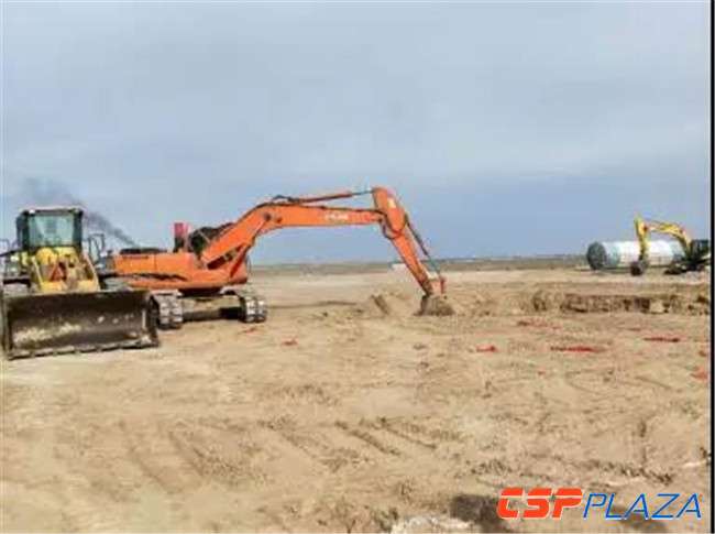 CSPPLAZA光熱發電網訊:據玉門鑫能方面消息,2017年8月31日上午,玉門鑫能熔鹽塔式50MW光熱發電項目常規動力島正式施工,開始進行地基建設,該島的施工單位為甘肅第一建設集團有限公司。