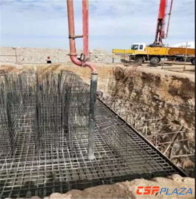 如按計劃如期完成,則首個模塊基礎花費的時間已逾一個月,對此,技術來源方江蘇鑫晨光熱技術有限公司方面解釋道,其項目采用創新型二次反射塔式熔鹽光熱發電技術,由15個二次反射塔集熱模塊組成,每個模塊的集熱功率達17MW,每個模塊都包括鐵塔、吸熱器以及一冷一熱兩個小型的熔鹽儲罐,因此對地基的要求較高。但首個模塊地基完成后,后續的操作起來更加熟練,時間會大大縮短。
