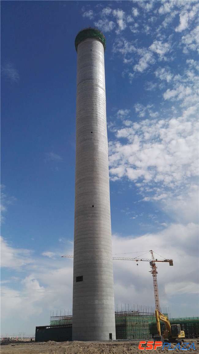 圖:玉門鄭家沙窩熔鹽塔式5萬千瓦光熱發電項目建設現場