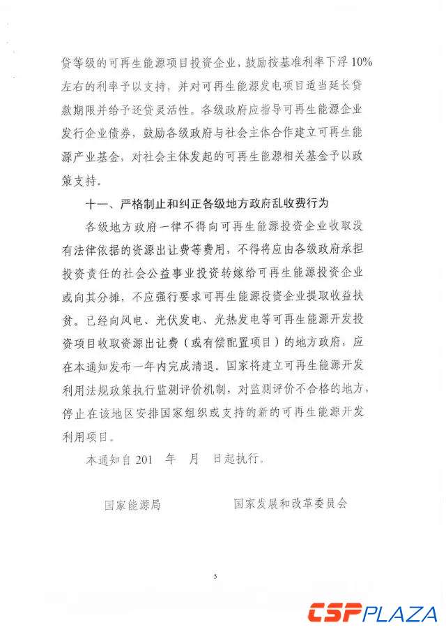 值得注意的是,《通知》明確,各地方政府一律不得向可再生能源投資企業收取沒有法律依據的資源出讓費等費用,不得將應由各級政府承擔投資責任的社會公益事業投資轉嫁給可再生能源投資企業或向其分攤,不應強行要求可再生能源投資企業提取收益扶貧。已經向風電、光伏發電、光熱發電等可再生能源開發投資項目收取資源出讓費(或有償配置項目)的地方政府,應在通知發布一年內完成清退。