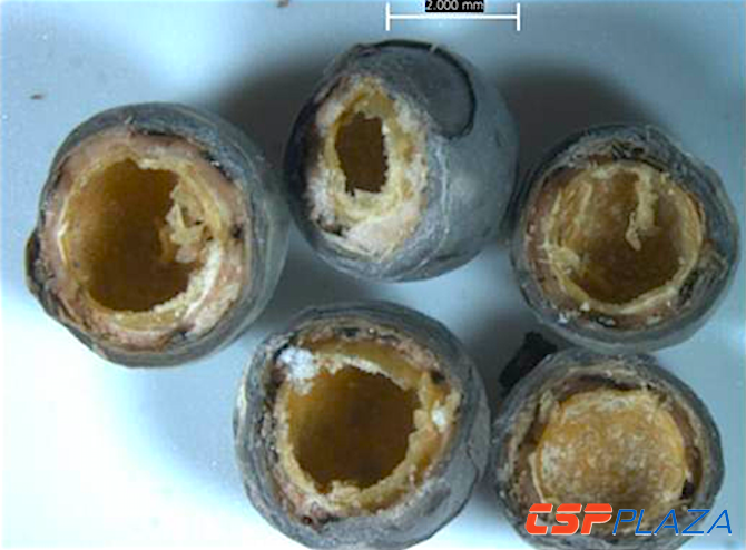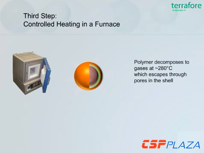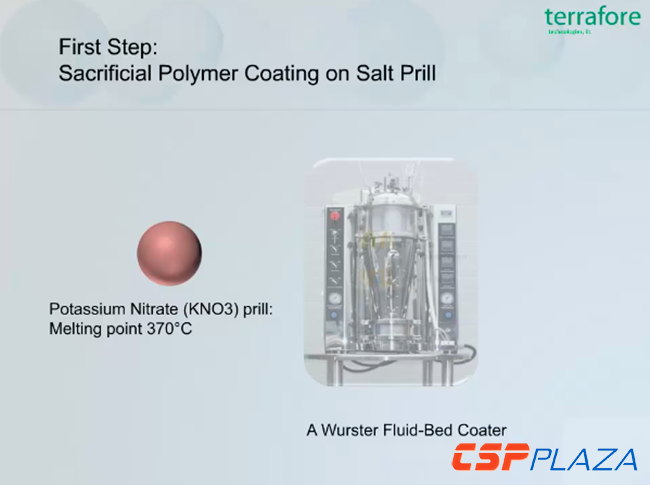 接著加熱膠囊,這時熔鹽表面附著的聚合物將再次變成氣體并通過氣孔逸出,同時也使膠囊內部留下了一些孔隙,為鹽在加熱和冷卻時的膨脹和收縮創造空間條件。最后再將一種特殊的涂層附著在膠囊表面以密封氣孔并使其牢固。【詳細過程見下列組圖】