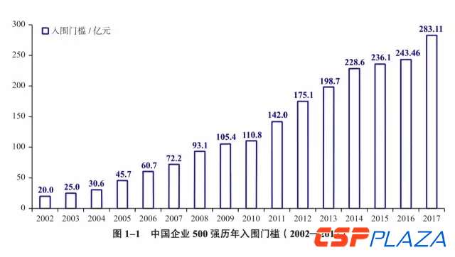 2017中國企業500強的入圍門檻為283.11億元,較上年大幅提升了39.65億元,提升幅度是自2002年首次發布中國企業500強以來最大。值得注意的是,入門門檻與2002年的20億相比,增幅高達13倍。2017中國企業500強的凈利潤總額達到28273.4億元,同口徑同比增長了4.12%,較上年500強的凈利潤總額27402億元增長了3.18%。