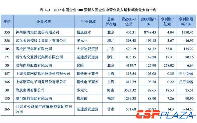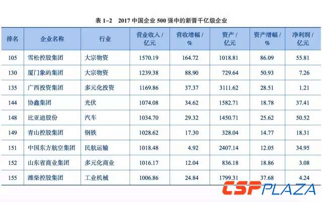 2017中國企業500強中有55家企業新入圍,包括神州數碼集團股份有限公司、雪松控股集團、中國林業集團、深圳順豐泰森控股集團、百麗國際控股有限公司。