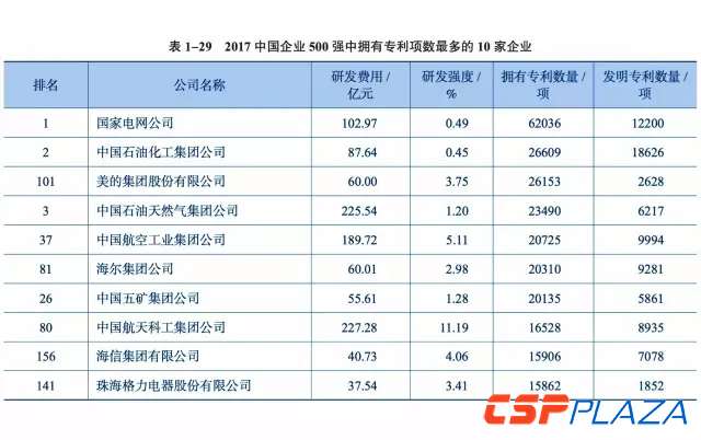 2017中國企業500強中有373家企業提供了專利數據(沒有部分知名企業如華為的專利數據),合計擁有專利73.72萬件,其中發明專利22.94萬件。