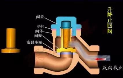 這種閥門的閥瓣沿著閥座孔的中心線移動,閥瓣靠流體的推力打開,靠重力落下,因此它只能安裝在水平管道上。升降式止回閥的閥體形狀與截止閥相似,因此它的流動阻力系數亦較大。