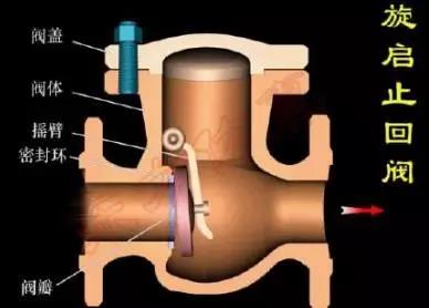 這種閥門的閥瓣繞閥座處的銷軸旋轉。閥瓣一般為整體結構,有些大口徑止回閥(公稱直徑為600mm及以上)多采用多瓣式。