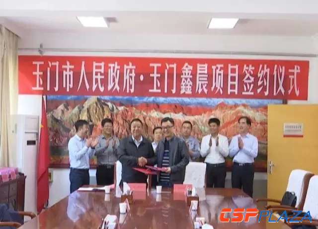 9月19日,玉門市與玉門鑫晨光熱技術有限公司簽訂兩個項目合作框架協議,總投資達1.6億元。按照協議,玉門鑫晨光熱技術有限公司計劃在玉門市分別投資1.2億元、4000萬元建設光熱實驗中心及城市供熱項目和VCI防腐材料生產項目。兩個項目建成后,將對促進玉門光熱產業發展、進一步提升城市服務功能起到積極作用。