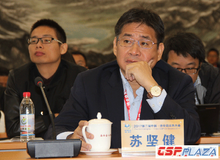 對于槽式太陽能熱電技術而言,當前面臨的主要技術難題之一就是采用導熱油為流動傳熱工質的集熱系統工作溫度較低,致使常規島發電機組朗肯循環的效率遠低于常規火電站。而熔融鹽作為一種性能優良的高溫傳熱儲熱介質,可以將工作溫度提升到560℃以上,有助于突破目前阻礙槽式太陽能熱發電站效率提升的工作溫度瓶頸;在聚光集熱條件相同的前提下,能大幅提高電站的發電效率與年發電量。天津濱海光熱發電投資有限公司(下文簡稱濱海光熱)在甘肅阿克塞建設了200kW試驗系統(800米回路),對熔鹽介質的槽式光熱發電技術進行驗證。9月22日-23日,第二屆德令哈光熱大會上,濱海光熱總經理蘇堅健作了題為《熔鹽槽式光熱發電技術的產業化實踐》的報告。