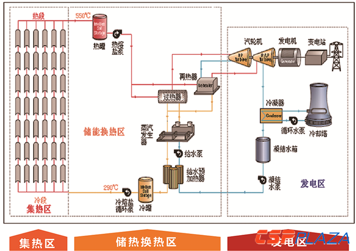 2、集熱系統和儲熱系統采用同一介質,取消了油/鹽換熱系統,簡化了儲熱系統工藝,可降低能耗、減少熱損、節約工程投資。