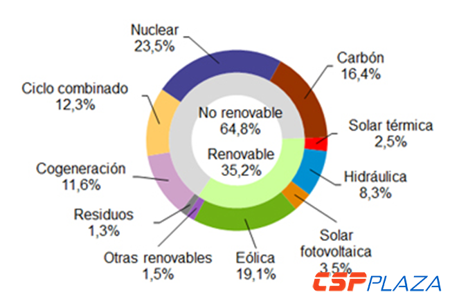 據CSPPLAZA此前報道,西班牙5、6、7、8月份光熱發電量分別占當月總發電量的3.4%、3.8%、4.1%與3.6%。