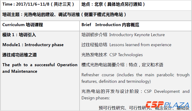 CSPPLAZA光熱發電網訊:由CSPPLAZA聯合光熱發電技術領軍人物Gilbert Cohen舉辦的第三期光熱發電專業培訓班即將于2017年11月6~8日在京舉辦,培訓內容將聚焦光熱發電項目的建設、調試及運維,為中國光熱項目建設提供實質性經驗與指導。