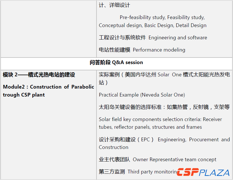 為期三天的培訓由Gilbert Cohen親自授課,將重點由其深度主導參與的美國64MW的Nevada Solar One槽式電站和美國SEGS系列九個槽式電站這些真實的實際參與案例切入,詳細介紹槽式光熱發電系統的太陽島、傳儲熱島和常規島的設計和建設以及調試和運維。