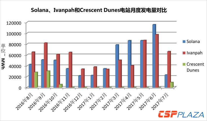 Solana、Ivanpah與CrescentDunes的最新發電概況