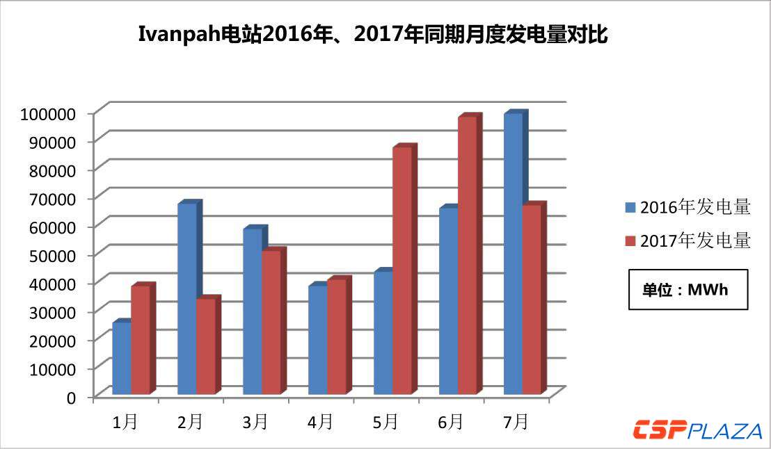 Solana、Ivanpah電站2016年、2017年同期發電表現對比
