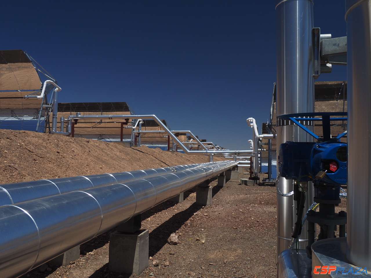 CSPPLAZA光熱發電網報道:KaXu Solar One光熱電站,裝機規模為100MW,由西班牙Abengoa與南非工業發展集團IDC共同開發,是南非第一個實現商業化運行的大規模儲熱型光熱電站。