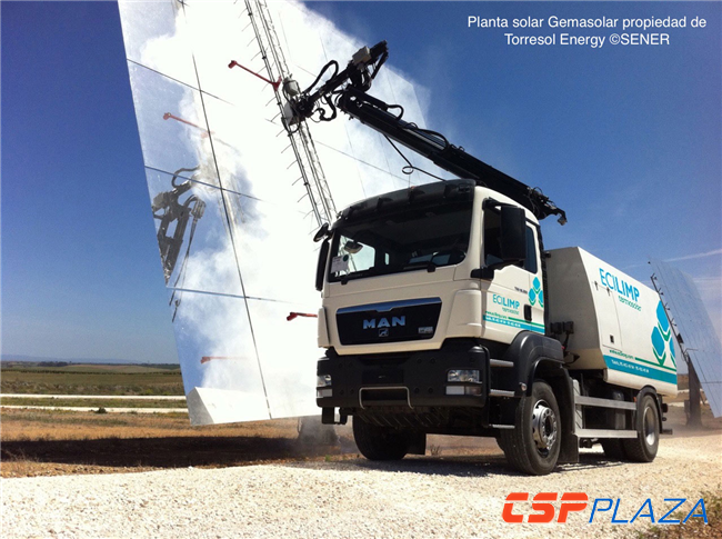 在國際范圍內,針對采用平面反射鏡的塔式和菲涅爾電站來說,很多項目方選擇采用小型自動清洗機器人進行清洗,這種小型機器人無需人工駕駛,可沿鏡面自動運動進行清洗,位于西班牙裝機20MW的Gemasolar熔鹽塔式光熱電站就采用了由Sener設計的小型機器人來清洗鏡面(詳情見下列視頻)。