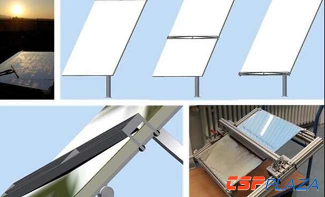另外,同樣參與WACSOP項目的來自DLR的研究員Andreas Pfahl則在開發一種新型清潔工具,欲借助重力掠過鏡子表面以達到清潔目的,而清潔用水則是利用清晨凝結在鏡面上的露水。(如下圖所示)