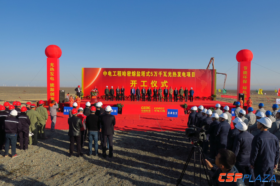 CSPPLAZA光熱發電網訊:據中國電力工程顧問集團西北電力設計院有限公司方面消息,10月19日,由我國最大的電力行業全面解決方案供應商之一——中國電力工程顧問集團有限公司(以下簡稱中電工程)投資興建的新疆首個光熱發電項目、入選中國首批20個光熱發電示范項目的中電工程哈密50MW熔鹽塔式光熱發電示范項目的開工儀式在伊吾縣光熱工業園項目所在地成功舉辦。