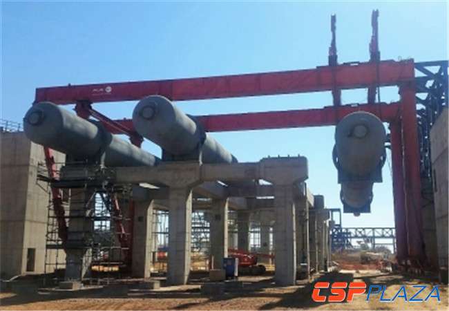 CSPPLAZA光熱發電網訊:10月30日,位于南非北開普省裝機100MW的Kathu Solar One槽式光熱發電項目的6臺換熱器現已全部安裝完成。
