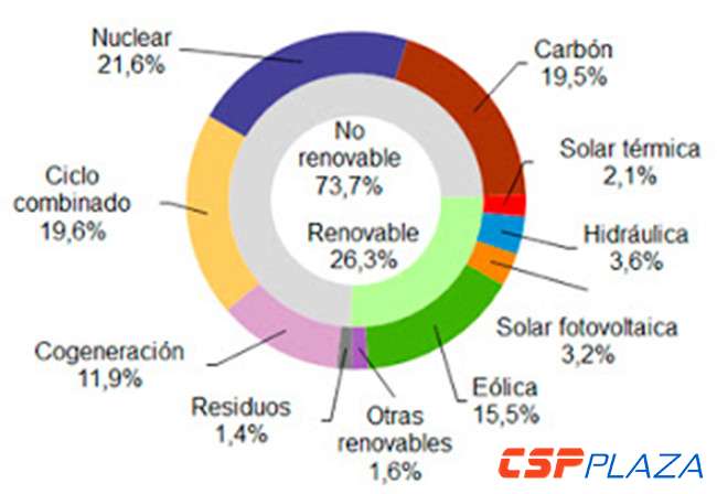 CSPPLAZA光熱發電網訊:最新數據顯示,西班牙10月份光熱發電量占該國當月總發電量的2.1%,創近半年新低。