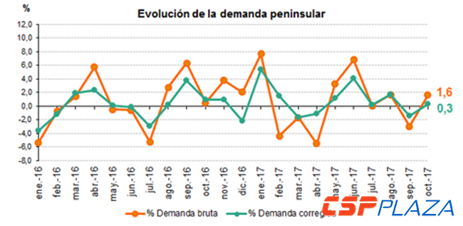 據了解,今年10月份伊比利亞半島電力需求總量約為20,145GWh,較去年同期高出1.6%,若將氣溫變化等相關因素考慮在內,那么該半島本年度10月份的電力需求總量則較去年同期上漲了0.3%。(可參考下圖)