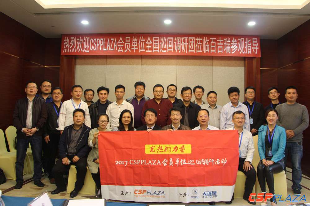 來自江蘇鑫晨光熱技術有限公司、北京兆陽光熱技術有限公司、北京中熱能源科技有限公司、沃利帕森集團埃維森公司、江陰市華方新能源高科設備有限公司、源和電站股份有限公司、沈陽市中色測溫儀表材料研究所有限公司、AGC集團旭硝子特種玻璃(大連)有限公司、江蘇市飛躍機泵集團有限公司、北京佳潔能新節能技術有限公司、浙江久立特材科技股份有限公司、北京市閥門總廠股份有限公司、山東北辰機電設備股份有限公司等多家CSPPLAZA的會員單位代表隨團參與了本次調研活動。