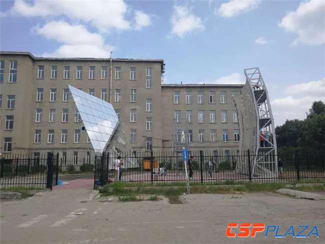 位于哈爾濱工業大學的太陽爐系統,主要是服務于航天技術的高溫吸熱器和材料研究。一次反射鏡面積73.63平方米,二次鏡反射面積(開口)77.62平方米,峰值熱功率>15kW,焦平面峰值聚光比2000。
