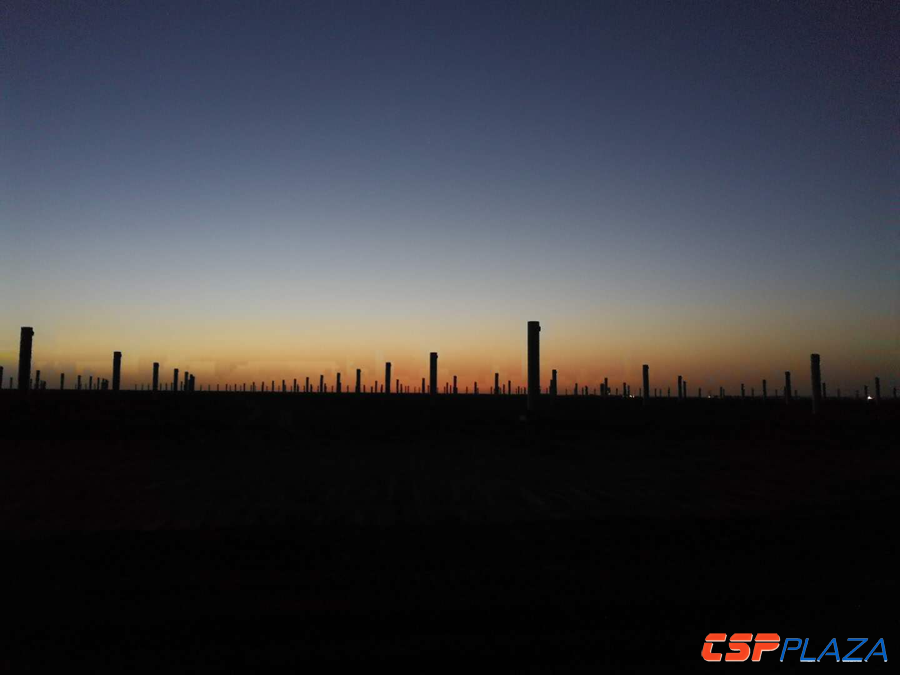 雖然項目地處西北,建設條件相對惡劣,還時常面臨沙塵暴等惡劣天氣影響,但該項目的推進速度卻絲毫沒有減慢。作為中國首批光熱示范項目之一,自2016年11月份進入全面建設階段以來,該項目各項建設工作均穩步推進,截止目前,已完成定日鏡基礎約1萬個,定日鏡立柱正在安裝,定日鏡組裝車間也已建設完畢,預計將很快投入使用,整體項目預將于2018年8月正式并網發電。