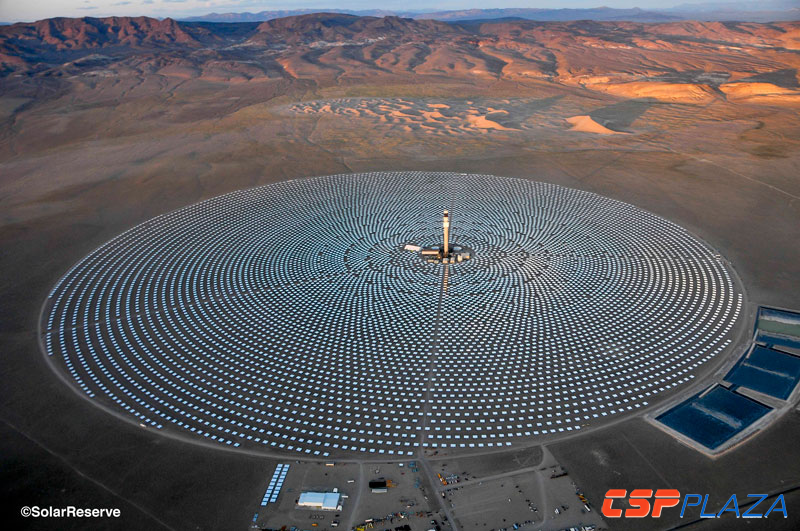 圖:由SolarReserve開發的全球首個百兆瓦級熔鹽塔式光熱電站