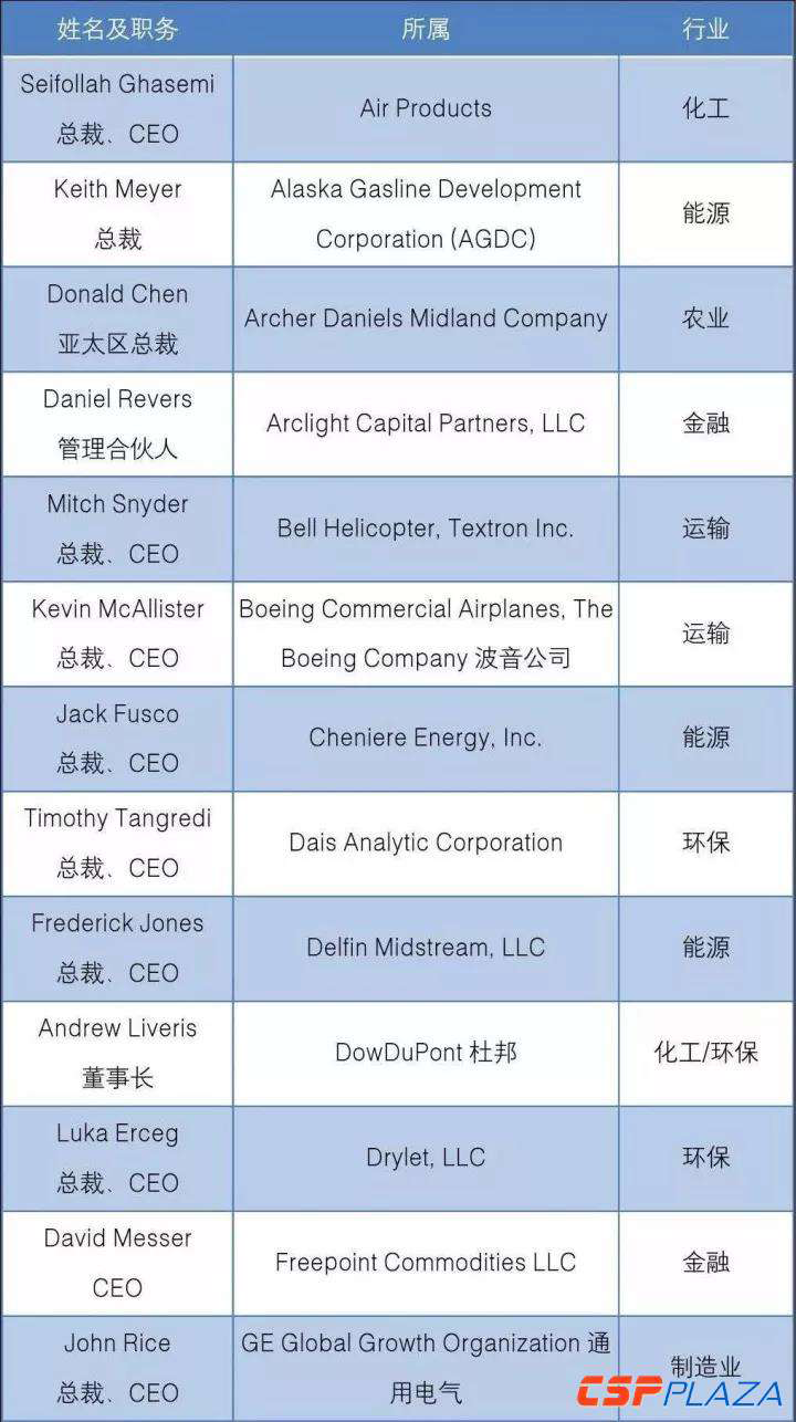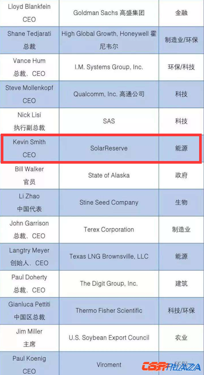 透過由29位企業高管組成并隨特朗普訪華的美國商貿代表團豪華陣容,人們除了看到通用電氣、波音、高通與陶氏杜邦等耳熟能詳的企業名字外,還發現了美國第一個液化天然氣出口終端開發商Cheniere、塔式光熱發電技術開發商SolarReserve【關于該司介紹詳見文末附注】、核電巨頭西屋電氣以及污水處理公司Viroment等不少新的面孔,而且隨訪企業中竟有多達四分之一涉足清潔能源業務。在鋼鐵、鋁材等傳統產品貿易領域中美屢現齟齬之時,特朗普也許想從清潔能源地帶打開更大的視窗。
