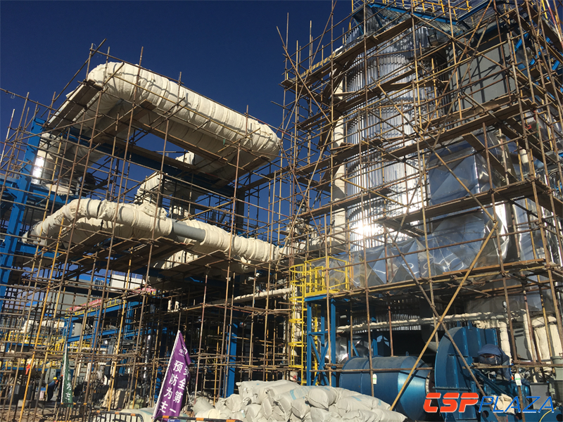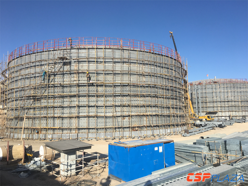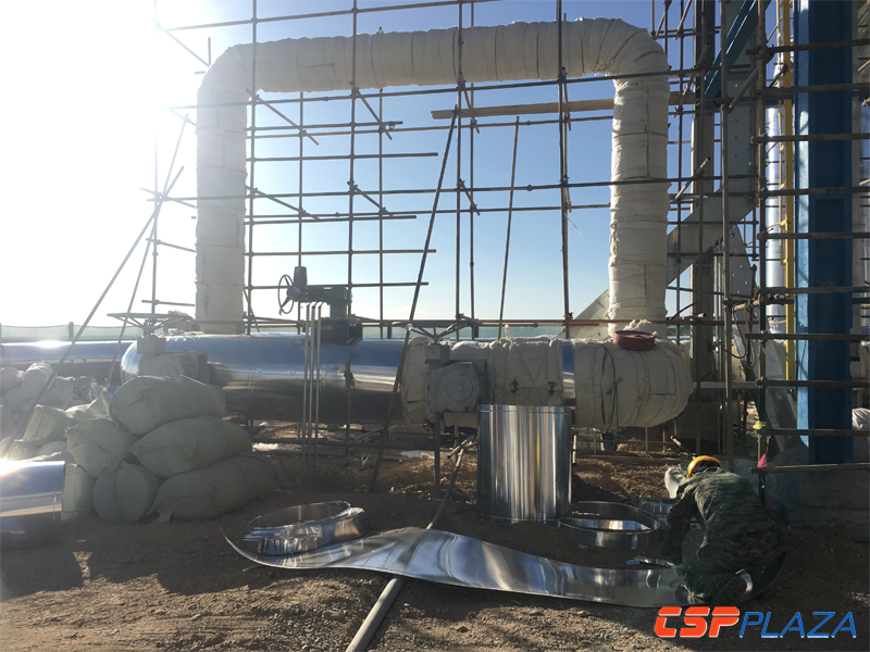 據現場了解,該項目的鏡場已完成安裝約90%,其中集熱管安裝完成接近80%;傳儲熱部分(除蒸汽管道外)的導熱油管道系統已經基本完成安裝;儲熱罐罐體正在作保溫施工,采用電伴熱和保溫材料,預計12月下旬可完成儲罐的整體建設;常規島部分,正在安裝汽輪發電機組,其它設備安裝工作已基本結束。
