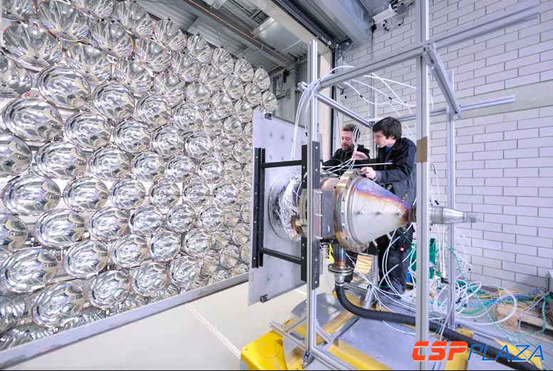 為此,該研究所搭建了一個由150個氙短弧燈組成的蜂窩狀陣列,氙短弧燈被垂直安裝在高支架上,其直徑大約一米的鏡面反射鏡可將光線集中在20×20厘米(7.87×7.87英寸)的范圍內。