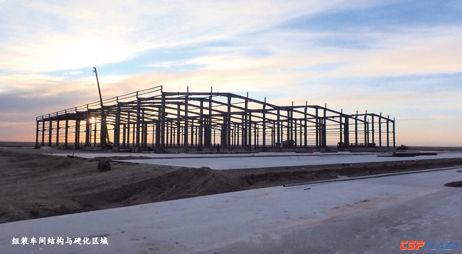 截止2017年10月底,該項目光場集熱區集熱器樁基礎已完成80%,儲熱換熱區儲罐基礎開挖工作已完成,發電區廠房基礎開挖及基礎墊層已完成,配套引水工程已完成90%,組裝車間主體結構已完成,目前各項建設工作正在實施,按計劃要求爭取在2018年12月建成投產。