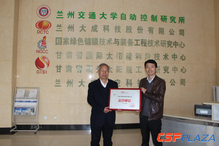 作為CSPPLAZA平臺會員單位,范多旺代表蘭州大成在本次調研活動中接受了CSPPLAZA主編胡喜鵬頒發的會員單位牌匾。