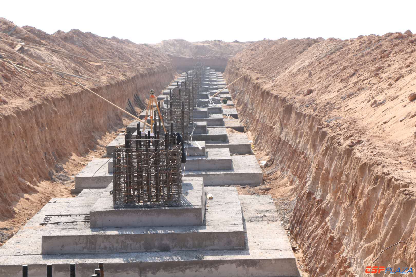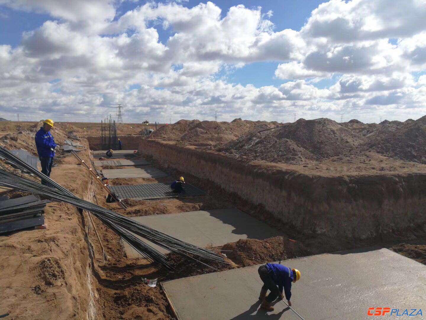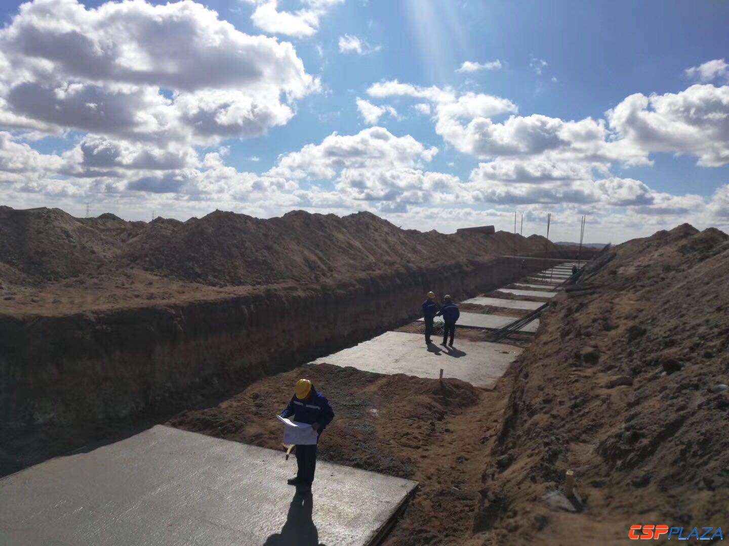 CSPPLAZA光熱發電網:近日獲悉,入選我國首批光熱發電示范項目的中核龍騰100MW導熱油槽式光熱發電項目的現場建設工作正在緊張有序地推進,目前該項目場平工作已經完成95%左右,2萬平方米安裝廠房基礎已經完成,12月份將完成結構安裝,該項目也是繼中廣核德令哈50MW槽式導熱油光熱發電項目之后,進度最快的槽式光熱項目之一。