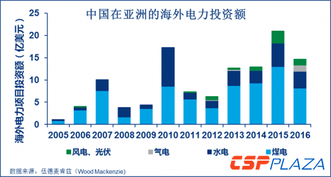 中國用電量增速放緩和電力供應持續過剩正導致國內電力基礎設施投資增速進一步放緩。越來越多的中國電力企業開始放眼海外進行資產并購重組,或者直接投資建廠。過去十年,中國對亞洲其他國家的電力投資額逐漸增加,電源投資主要集中于煤電和水電。風電、光伏等可再生能源投資近年來也出現快速增長。