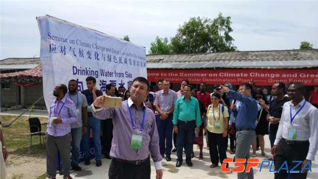 今年8月,南南合作應對氣候變化與綠色低碳發展培訓班在海南舉辦,柬埔寨、伊朗、尼日利亞等23個國家的40名學員來到樂東縣海水淡化項目基地,進行了現場培訓。這些外國政府官員和技術人員考察項目、喝了純凈水后,紛紛點贊。這也為綠色低碳海水淡化裝置進入“一帶一路”,起到了很好的宣傳作用。