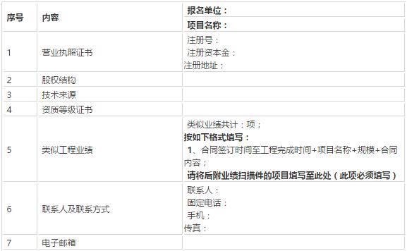 注:所有的報名資料(包括資質文件掃描件)必須制作成壹個WORD(2003版)文件;此報名表需蓋章掃描版及word版各一份。